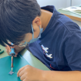 IT/IoTスキルのコンテンツを提供するのは、株式会社スク―ミー。スク―ミーボードとPCが貸し出され、実践的な授業が行われました。まずは数字が表示されるセンサーコネクターを活用して、子どもたちのアイデアをもとに対戦形式のゲームを実施。ゲームに勝つためにはどんな設定が必要なのかを考え、PCでプログラミングし、それらを即座にスク―ミーボードに反映して先生や仲間と対戦する。この作業を繰り返すことで、自然とプログラミング的思考が養われていきました。最後は子ども同士で教え合いながら、数字の表示とLEDライトを組み合わせたオリジナルゲームをつくりました。