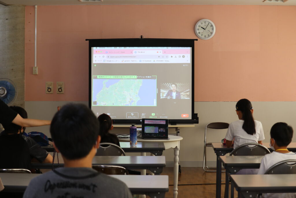 ヴィジョナリーパワー株式会社の代表取締役であり、TSAの校長である⼾⽥達昭先生の挨拶から、TSAがスタート。仕事で地方に出張していた戸田校長は、オンラインで生徒たちと顔を合わせて言葉を交わしました。ヴィジョナリーパワー株式会社は、アントレプレナーシップ、事業構築を担います。