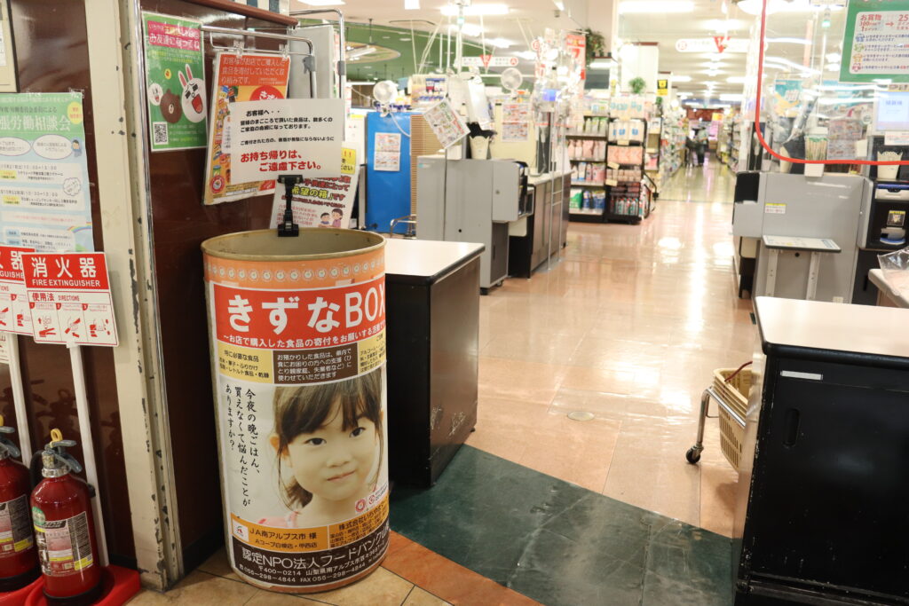 フードバンク山梨のきずなBOXは、2018年から、県内のいちやまマート全店13店舗に設置しています。私はフードバンク山梨の拠点がある南アルプス市の住民で、以前から自宅にある食べきれない食品などを個人的によく寄付していました。そういったつながりがあり、フードバンク山梨からきずなBOXのお話を伺ったときに、地域社会に貢献できる良い取り組みだなと思うと同時に、店舗に設置することができれば、困っている子どもたちにたくさんの食料を届けることができるのではと考えました。企業として販売期限を過ぎてしまった賞味期限内の食品を寄付する選択肢もありましたが、単に我々が食品を寄付するのではなく、地域のお客様の思いを届ける一つのパイプラインになればという気持ちで、全店にきずなBOXの導入を進めました。