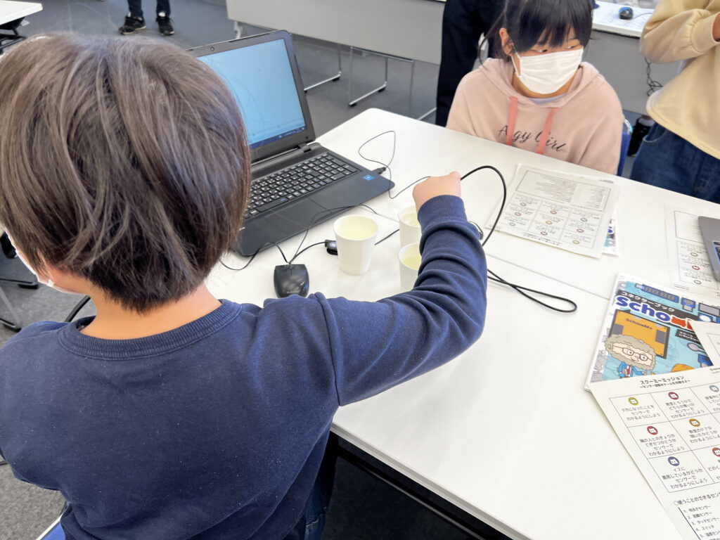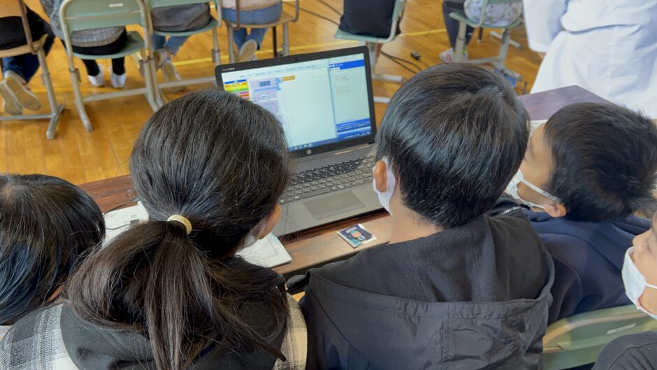2022年10月に山形県の尾花沢市の小学生約100名を対象に、明るさや水温、磁気など普段は目には見えない数値をスクーミーのセンサーを使って計測する授業を行いました。学校でついつい先生がやってしまう花の水やりや、宿題を全員提出したかどうかのチェックなどをセンサーで知らせることができないかを考えました。教室で起こる課題を自分たちで解決する体験を通して、主体的に課題を解決していこうとする姿勢を育みました。