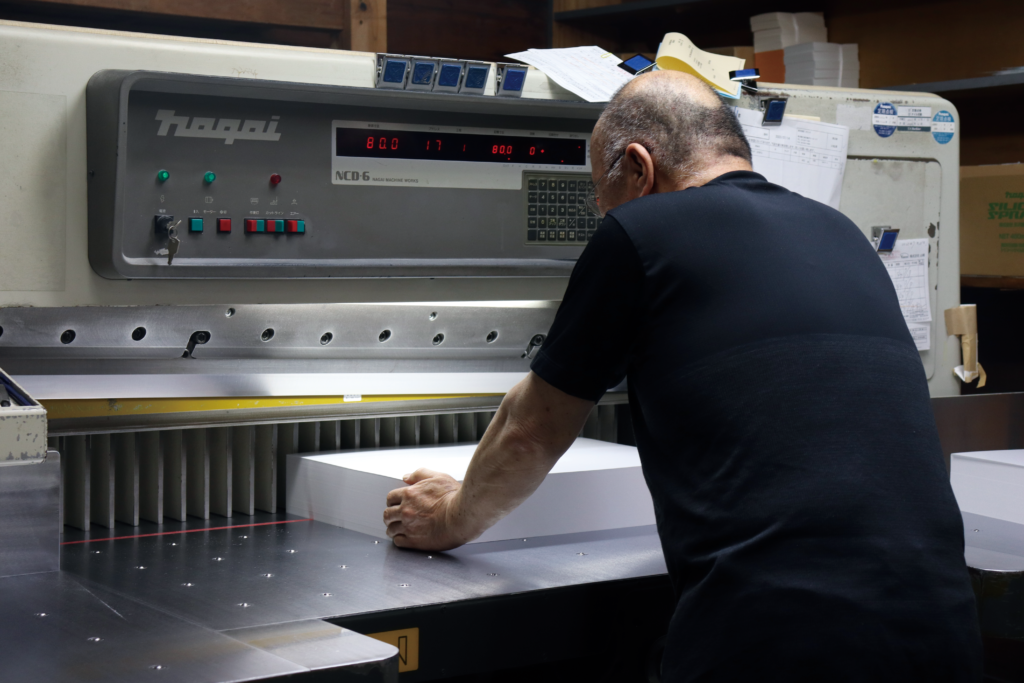 株式会社山利は紙の専門商社で自社の工場で断裁加工も行なっています。祖父が創業してから70年、紙の卸をメインに行ってきた、まちの紙屋さん、といったところでしょうか。紙を仕入れ、断裁し、お客様に届けるのがメインのビジネスであり、印刷物もワンストップで受注・製作・納品いたします。そのため、お客様、仕入れ先、印刷加工会社などの外注先、そして社員間のそれぞれの場面におけるコミュニケーションと信頼関係を何より大切にしています。私自身は大学卒業後、IT業界と監査法人での仕事を経て、家業を継ぎました。IT、会計、紙というのは一見無関係な業界に見えますが、どこで経験したことも今の仕事で役立っています。