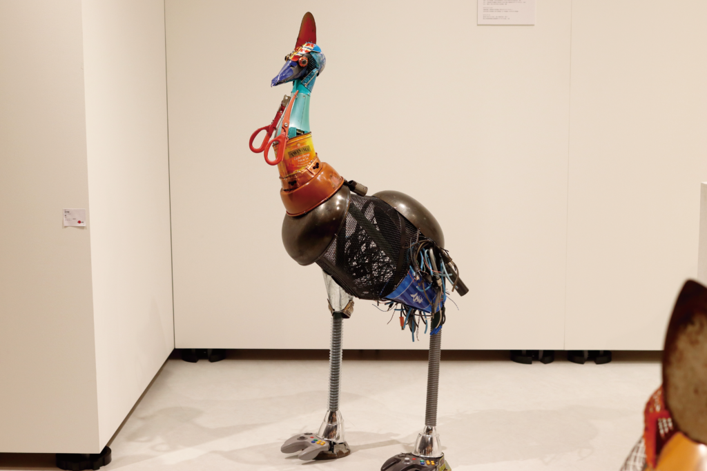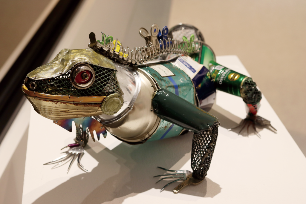 ガラパゴス諸島はダーウィンの進化論でも有名ですが、大自然の象徴のような場所で、そこに住む生きものをつくるのにどのような素材を使うか悩みました。そこであえて都会の廃材という対極にあるものを材料に選ぶことで、自分なりに環境問題に対するメッセージを作品に込められるのではと考えました。この作品がきっかけで、それから廃材で生きものの作品をつくり続けています。
